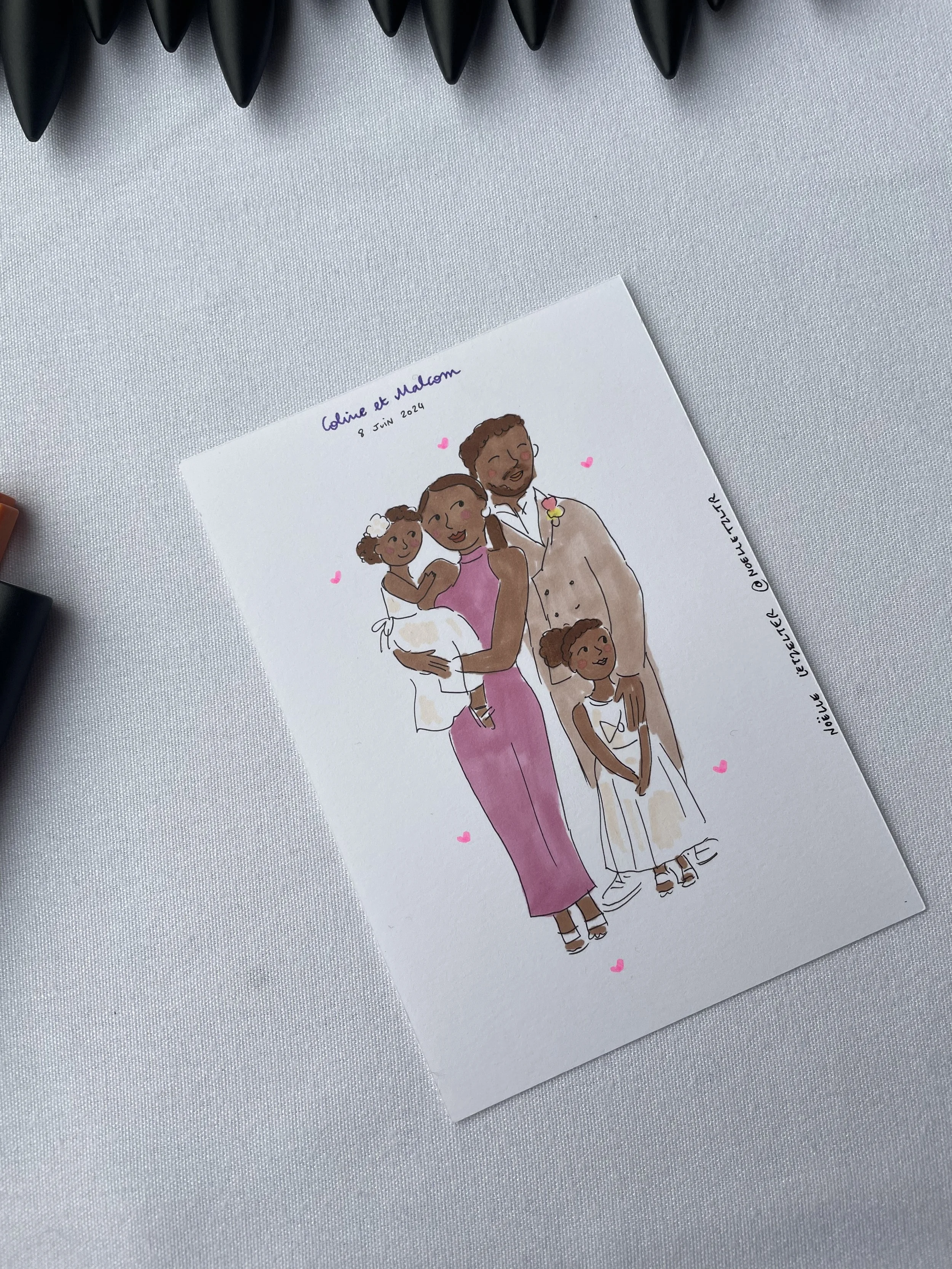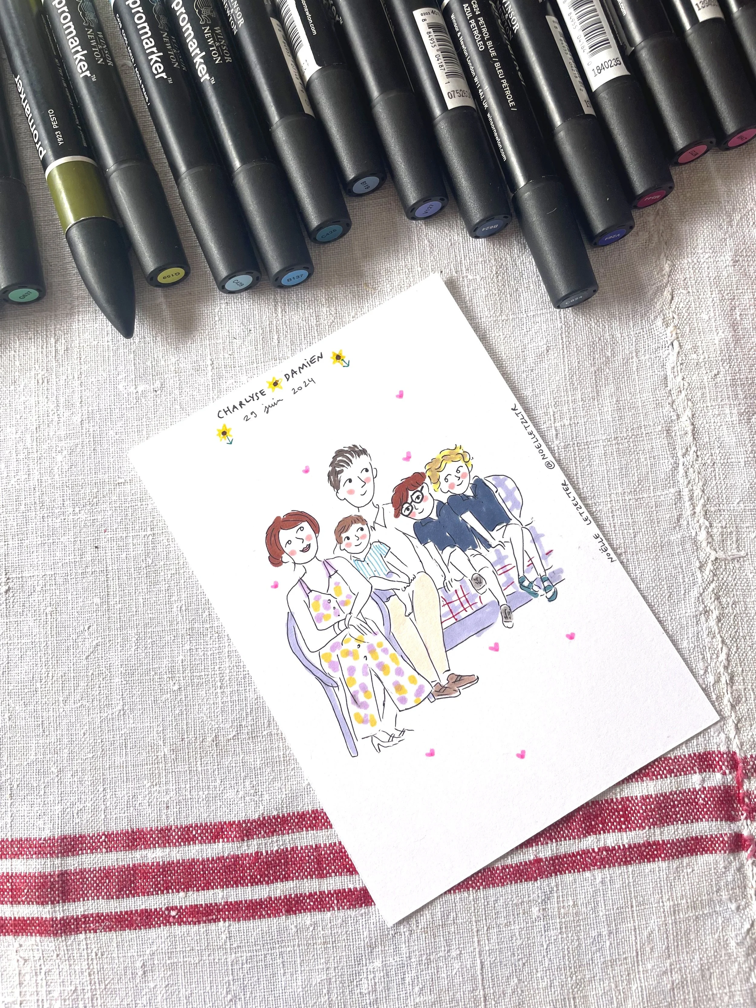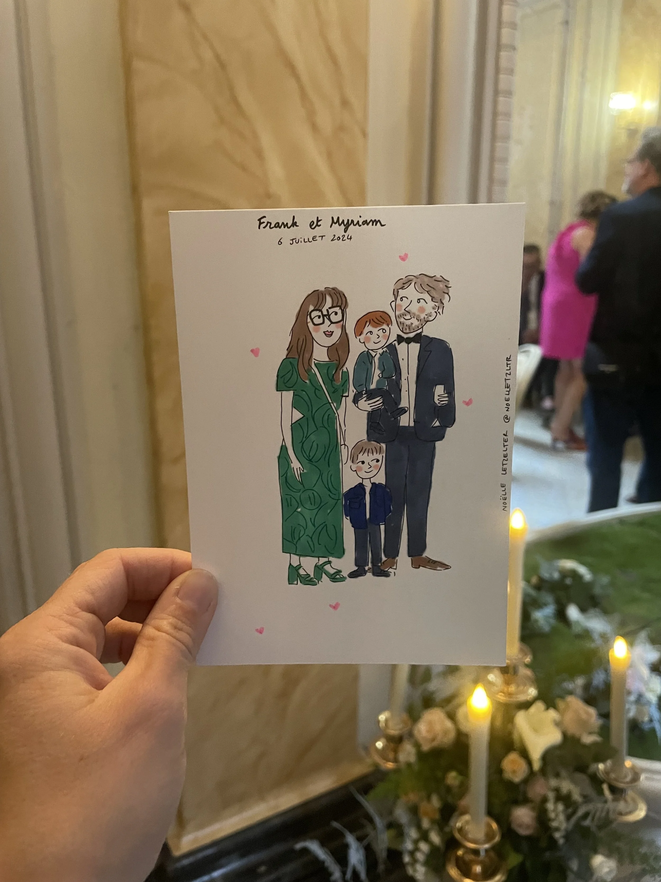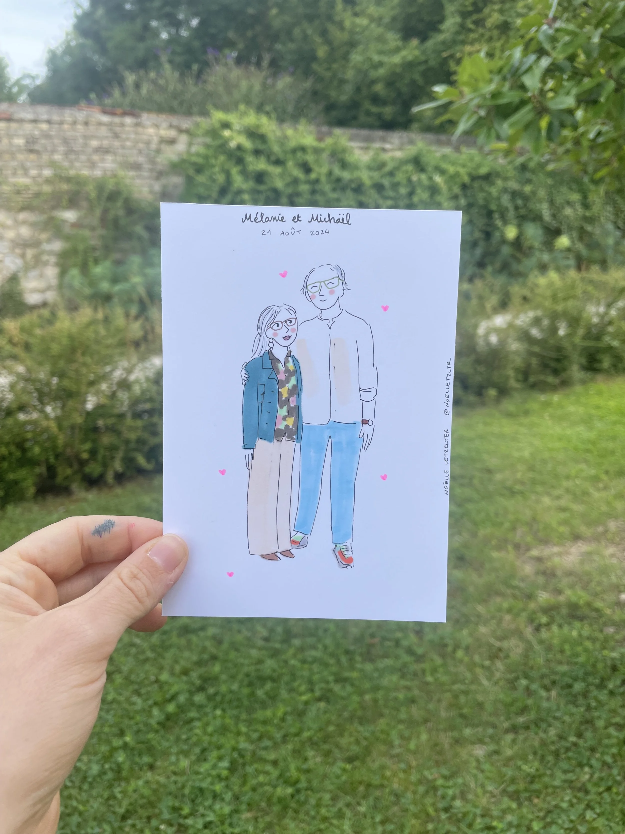 Je propose différents formats, soit sur une carte format A6, ou un format “Polaroïd”, ou encore un format “photomaton”.